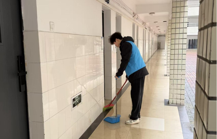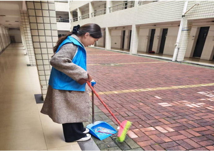 志愿者们带上要用的劳动工具,来到自己负责打扫的区域,他们三俩一组、分工明确。在教学楼里,草坪上,马路旁,都有他们的身影。他们互相帮忙,一起配合,认真仔细地打扫每一个地方。每个人都用心投入到清扫工作中,用实际行动美化校园,用自己的努力守护着身边的环境。