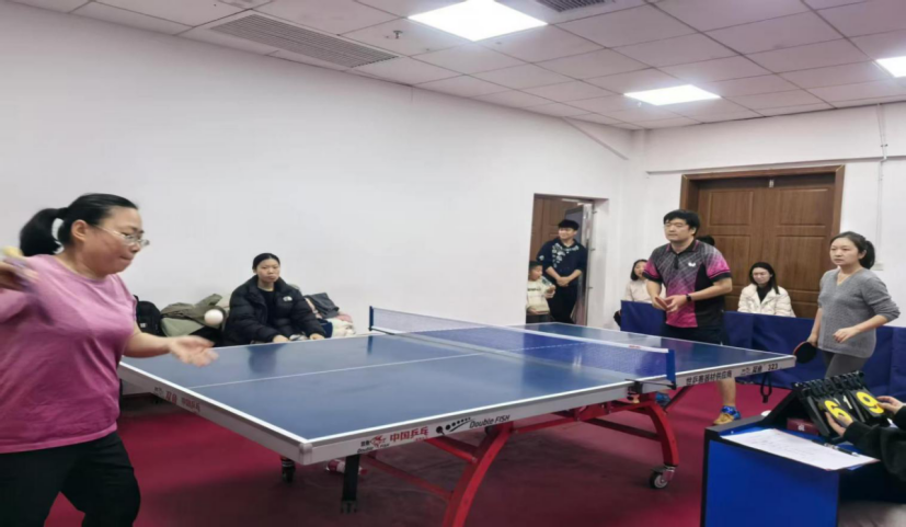 赛场上,音乐学院的老师们化身 “乒乓健将”,尽显风采。平日里深耕教学、专注艺术的老师们,在球台前同样表现出色。挥拍凌厉、防守稳健,弧线优美、扣杀有力。男单沉着应战、灵活应变,混双默契配合、攻防有序。面对强手毫不退缩,每一分都全力以赴,得分时相互鼓劲,失分后彼此打气,充分展现了顽强拼搏、团结向上的体育精神。