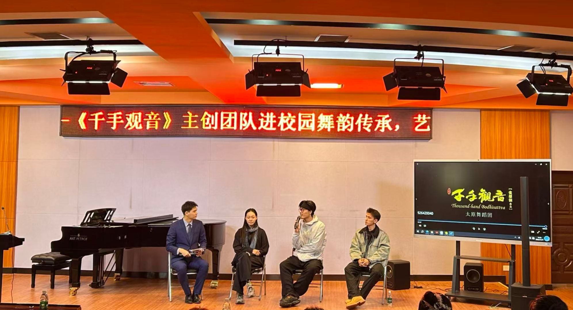 11月17日下午,“舞韵传承,艺享观音——《千手观音》主创团队进校园艺术交流会”在我院501汇报厅顺利举行。主创团队介绍了著名导演张继钢历时七年创作的舞剧《千手观音》的艺术理念与创作历程。该剧以千手观音传说为蓝本,通过“三公主寻莲救父”的动人情节,传递“真、善、美”的永恒主题,在场师生对该作品的文化内涵与艺术特色有了更加深入的理解。