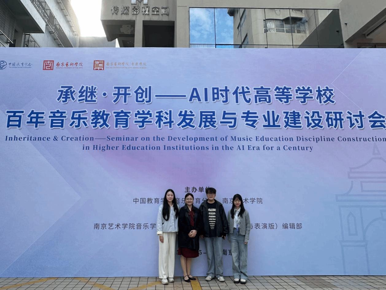 2025年10月24日至26日,衡阳师范学院音乐学院陈瑾教授带领彭胜康、周靖璇两位音乐教育方向硕士研究生前往南京参加“承继·开创——AI时代高等学校音乐教育学科专业建设发展研讨会”。此次会议由中国教育学会音乐教育分会与南京艺术学院联合主办,汇聚全国音乐教育界专家学者,共同探讨人工智能时代音乐教育的创新与发展路径。